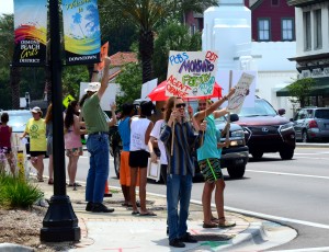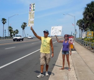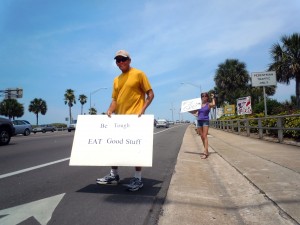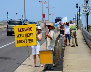 Held at the entrance to the bridge, the demonstration against foods containing genetically modified organisms or GMOs, was held by GMO Free Volusia County. The group was also protesting against Monsanto, a multinational chemical and agricultural biotechnology corporation.