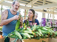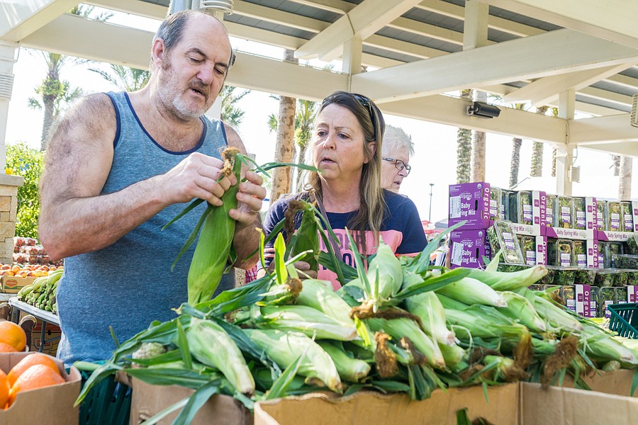 Rock and Karen Collins search through the fresh produce at the farmers market in the Pavilion in Port Orange. Photo by Zach Fedewa