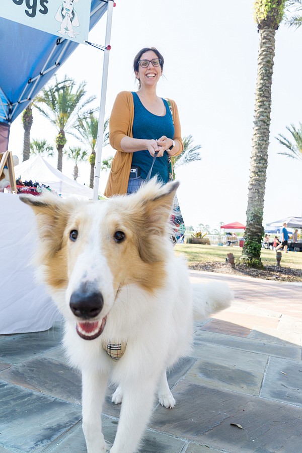 Jennifer Toegel brought her dog Ameilia to the farmers market in the Pavilion in Port Orange. Photo by Zach Fedewa