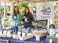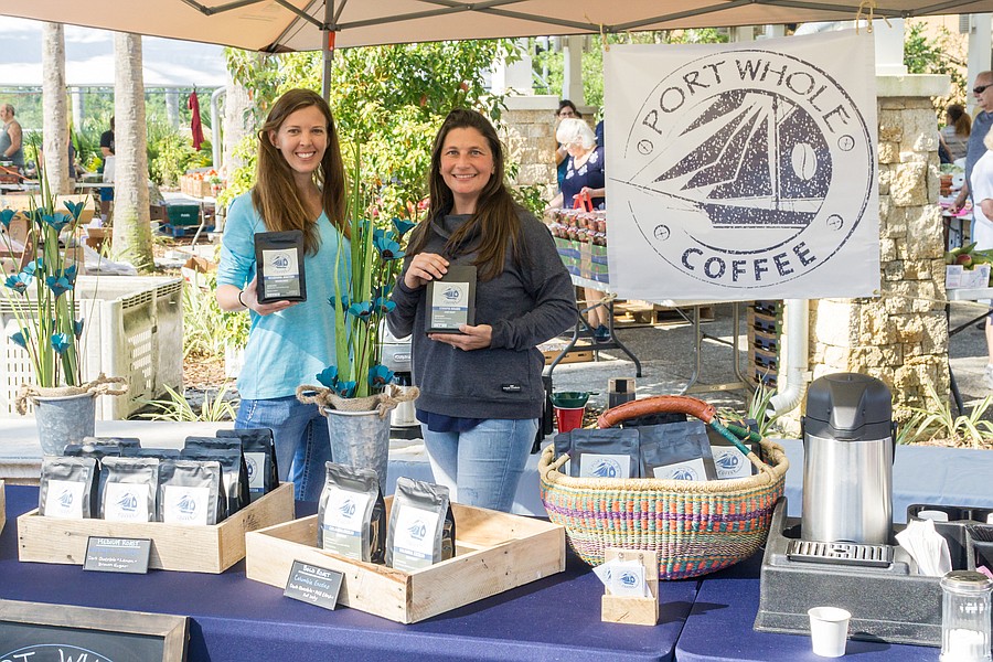 Patty Snyder and Brittney Greenawalt represent their new roastery, Port Whole Coffee at the farmers market in the Pavilion in Port Orange. Photo by Zach Fedewa