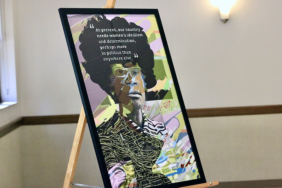 The luncheon was held in honor of what would have been Shirley Chisholm's 100th birthday. Around the room, posters were set up featuring Chisholm's most famous quotes. Photo by Sierra Williams