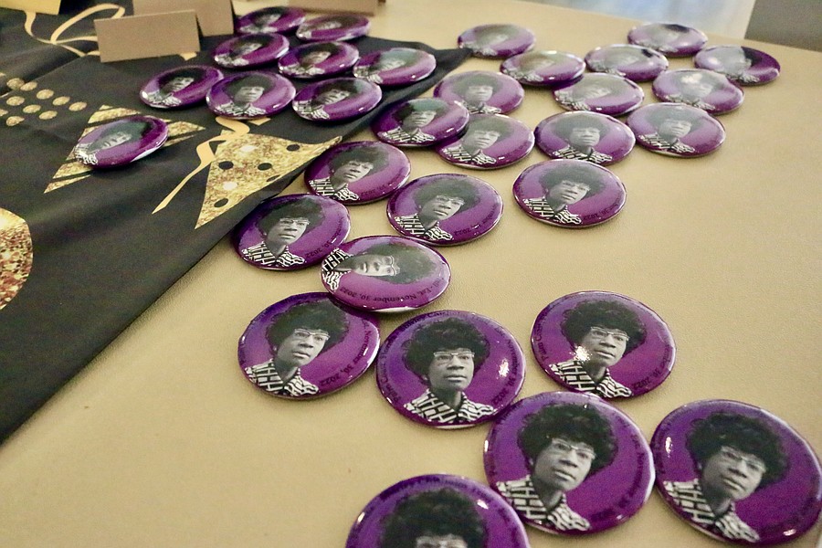 Buttons featuring Shirley Chisholm were handed out to attendees. Photo by Sierra Williams