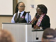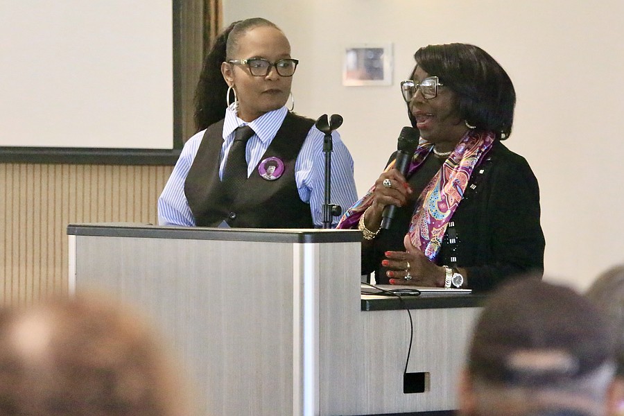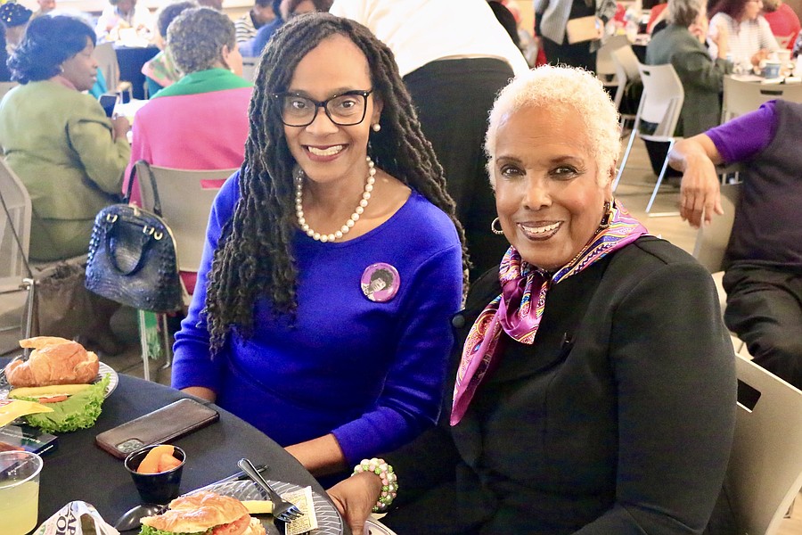 Marie Bosley-Ford, god-daughter of Shirley Chisholm, and Agnes Lightfoot, president of the Democratic Women's Club of Flagler County. Photo by Sierra Williams