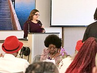 New school board member Janie Ruddy gave a speech about education at the Shirley Chisholm luncheon. Photo by Sierra Williams