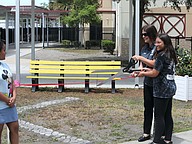 A two-year project by Buddy Taylor Middle School's Eagles in Action Conservation Club came to fruition Monday, April 21, with the ribbon cutting for two "Buddy Benches" in a newly landscaped corner of the school's courtyard.