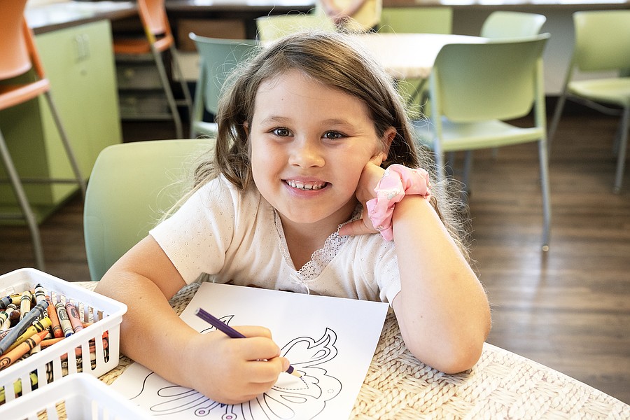 Willow Rosiek colors a mask during the Earth Day at the Environmental Discovery Center event on Saturday, April 19. Photo by Michele Meyers