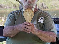Friends of the Tomoka Basin State Parks member J.T. Eldreth poses with some horns during the Earth Day at the Environmental Discovery Center on Saturday, April 19. They made 70 fish prints to give to people attending the event. Photo by Michele Meyers