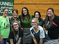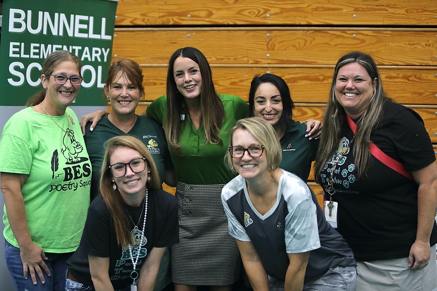 Bunnell Elementary School Principal Cari McGee (center) with staff and PTO representatives. Photo by Brent Woronoff