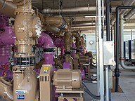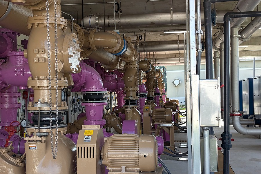 The purple pipes contain reclaimed water; brown is for inflows. Photo by Brent Woronoff