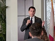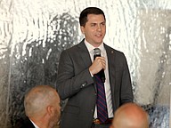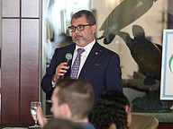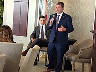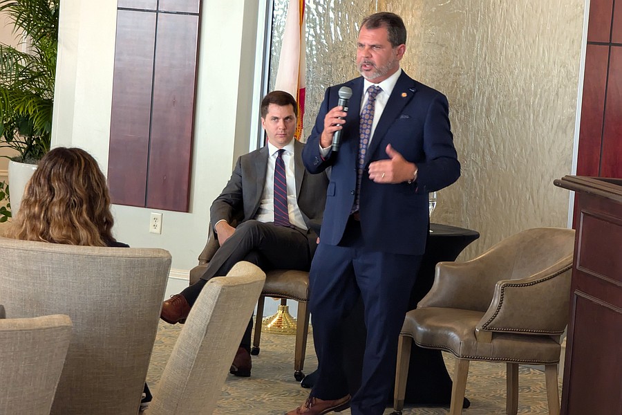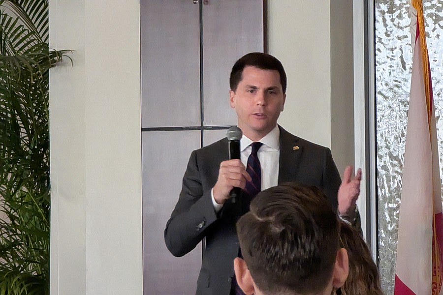 Staate Rep. Sam Greco speaks at the Palm Coast-Flagler Regional Chamber of Commerce Legislative Update Breakfast at the Hammock Dunes Club. Photo by Brent Woronoff