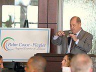 John Phillips, president of the Palm Coast-Flagler Regional Chamber of Commerce served as the master of ceremonies at the Legislative Update Breakfast on Aug. 7 at the Hammock Dunes Club. Photo by Brent Woronoff