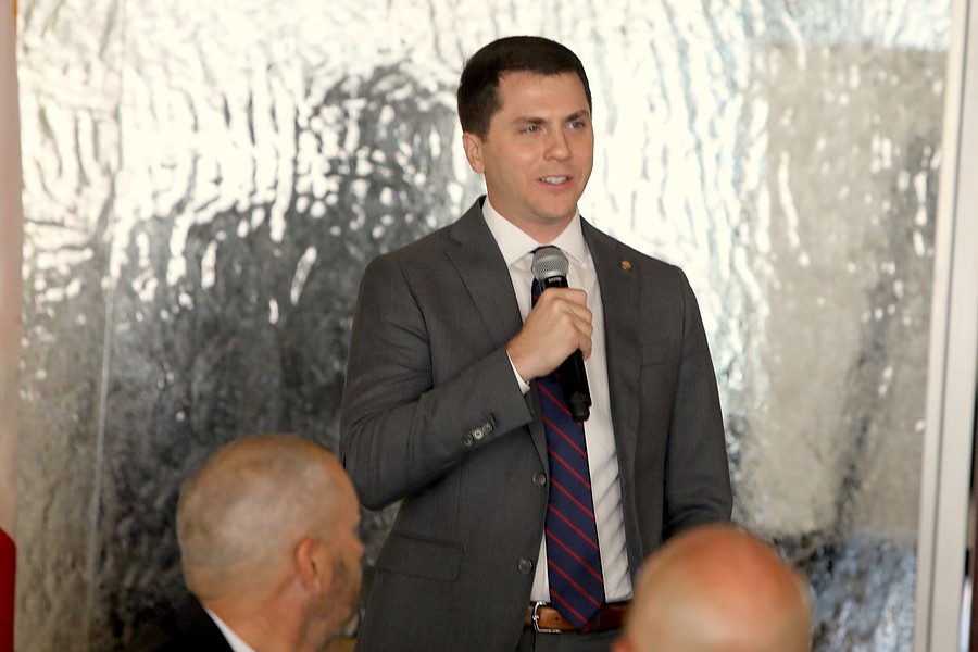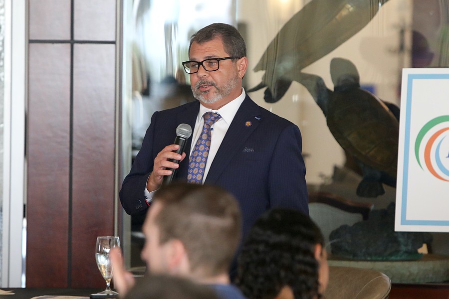 State Rep. San Greco speaks at the Palm Coast-Flagler Regional Chamber of Commerce Legislative Update Breakfast on Aug. 7 at the Hammock Dunes Club. Photo by Brent Woronoff