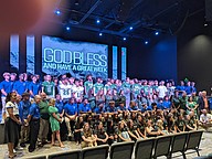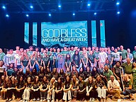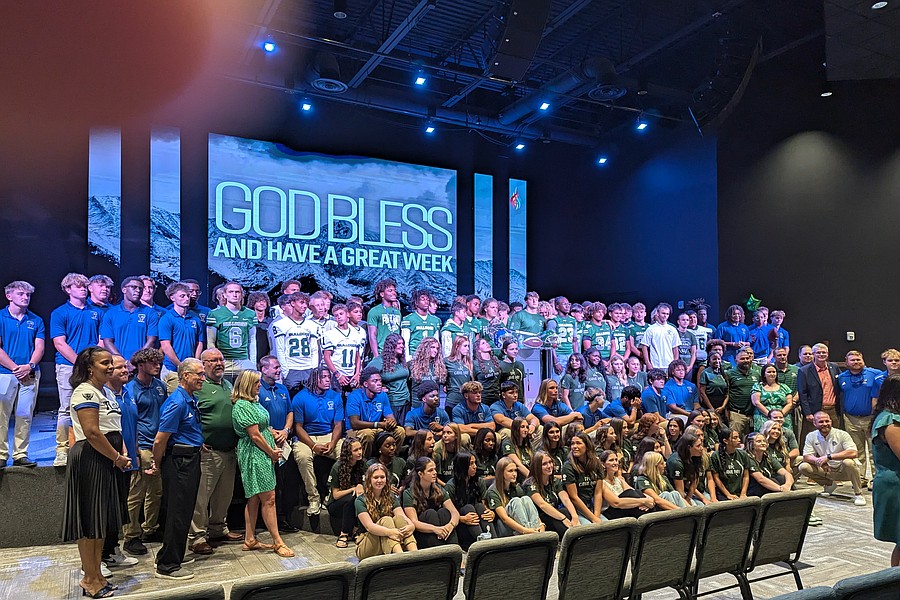 During the final praise song, singers tossed footballs to each team. After the service, players, coaches, students, administrators and School Board members posed for a group photo.