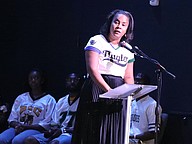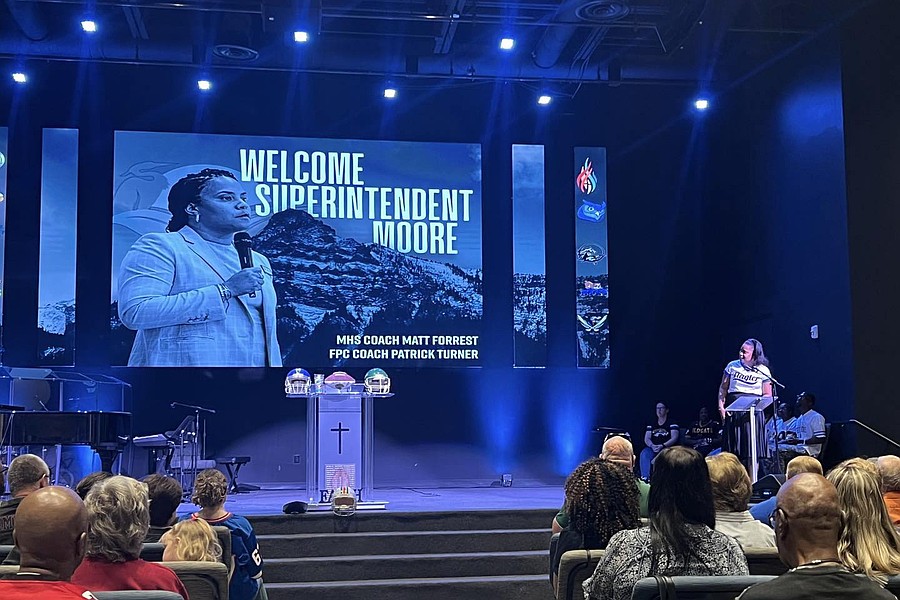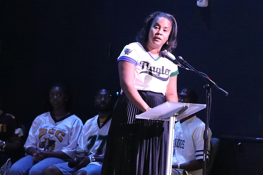 Flagler Schools Superintendent LaShakia Moore speaks during Palm Coast United Methodist Church's Football Sunday service on Aug. 10. Photo by Brent Woronoff