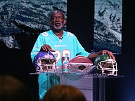 Palm Coast United Methodist Church Pastor Kevin James used football analogies in his message at the church's annual "Football Sunday." Photo by Brent Woronoff