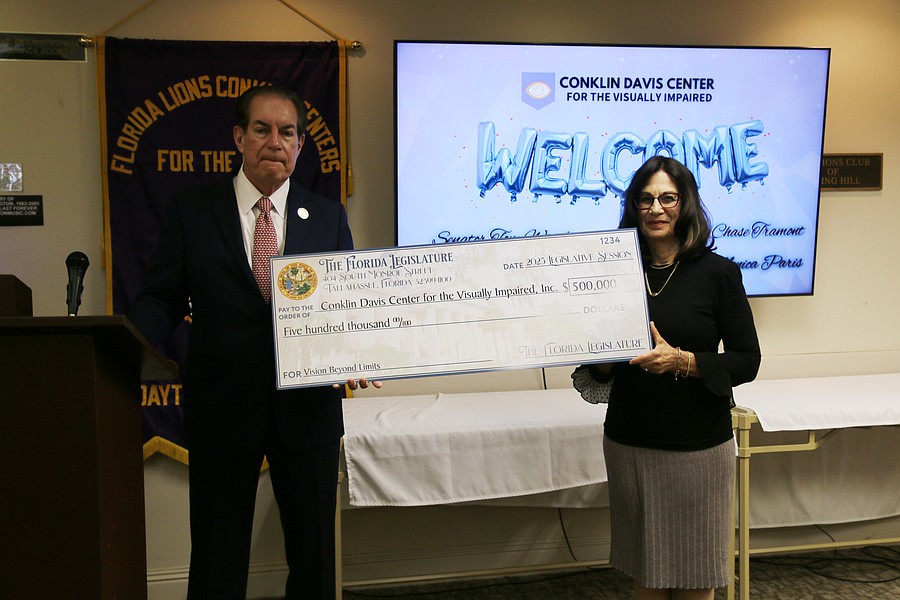 Florida Sen. Tom Wright presented the Conklin Davis Center for the Visually Impaired with a $500,000 check from the state to help fund the nonprofit's Vision Beyond Limits program on Tuesday, Aug. 12.