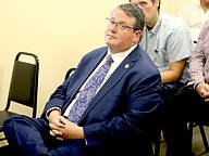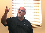 City Wastewater and Reuse Manager Danny Ashburn points to a slide during a PowerPoint presentation. Photo by Brent Woronoff