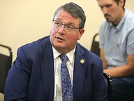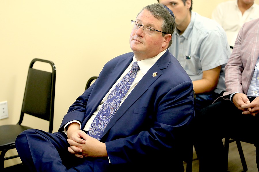 Congressman Randy Fine views a presentation at Palm Coast's Wastewater Treatment Plant 1. Photo by Brent Woronoff