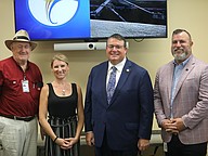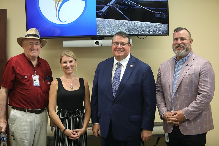 Councilman David Sullivan, Vice Mayor Theresa Carli Pontieri, Congressman Randy Fine and Councilman Ty Miller pose after a tour of Palm Coast's Wastewater Treatment Plant 1. Photo by Brent Woronoff