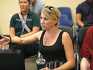 Palm Cost Vice Mayor Theresa Carli Pontieri answers a question from Congressman Randy Fine about the city's wastewater issues. Photo by Brent Woronoff