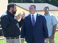 Wastewater Treatment Plant 1 Lead Operator Dan Niemann (left) explains a process to Congressman Randy Fine. Photo by Brent Woronoff