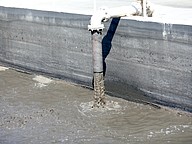 A pipe releasing liquid sludge at Palm Coast's Wastewater Treatment Plant 1. Photo by Brent Woronoff