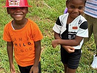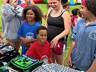 Children try on their backpacks at the St. Joe Plaza Back to School Block Party. Courtesy photo