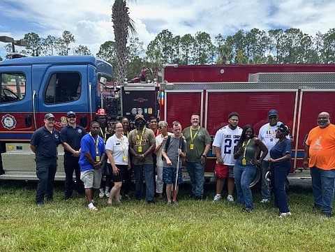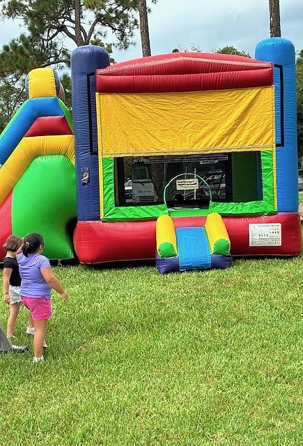 Children, accompanied by parents or guardians walked around to the various stations, filling their backpacks. The stations offered treats and fire hats as well as Italian Ice samples and ice cream from Scoops & Subs. One of the main attractions of the event was a bounce house. Children and adults also congregated around a Palm Coast fire truck, speaking with firefighters and posing for photos.
