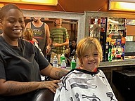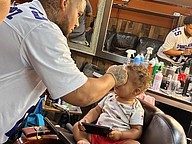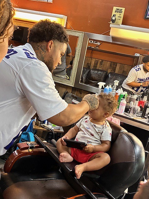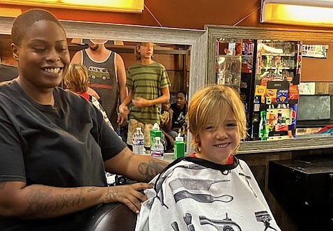A youngster gets a haircut at Toney's Barbershop at the St. Joe Plaza Back to School Block Party. Courtesy photo