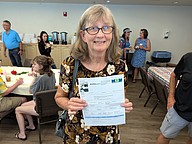 Claire Powell holds up the kennel card for her new cat Sprinkles. Photo by Brent Woronoff