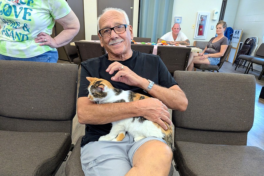 Jeff Jacobs with Honey Bunches, named because this kitten and sibling Oats were brought to the Flagler Human Society in a cereal box. Photo by Brent Woronoff