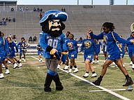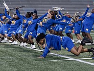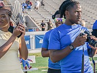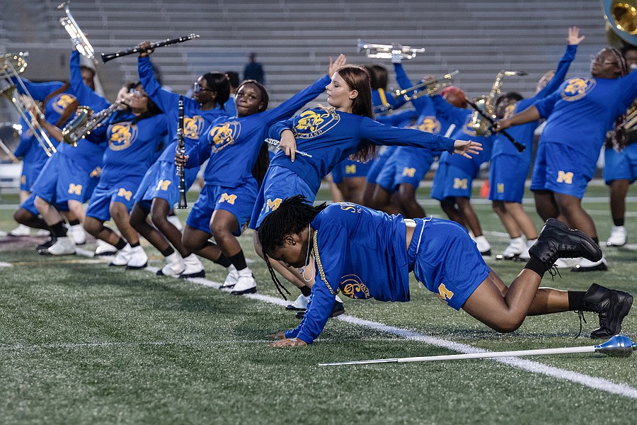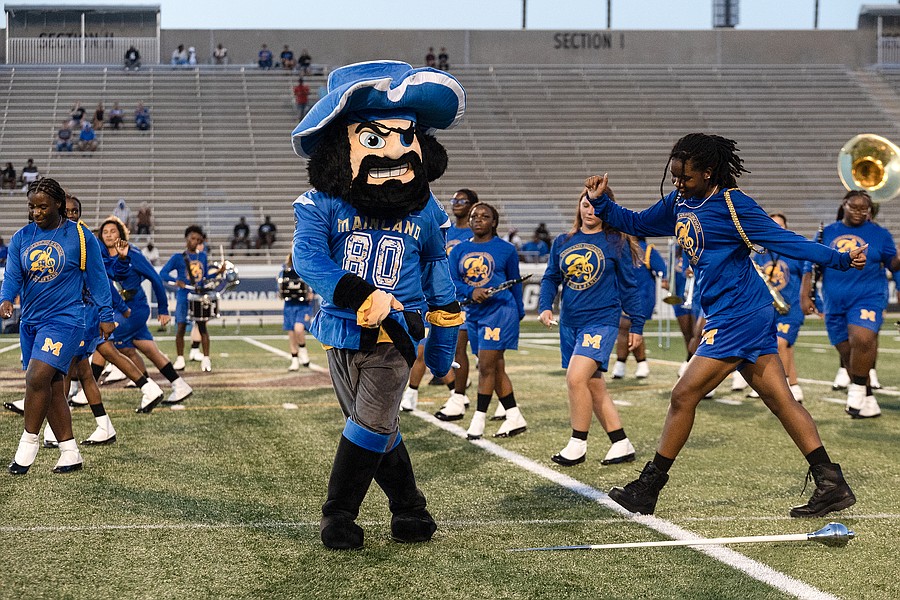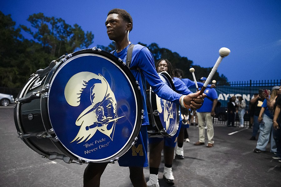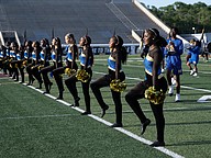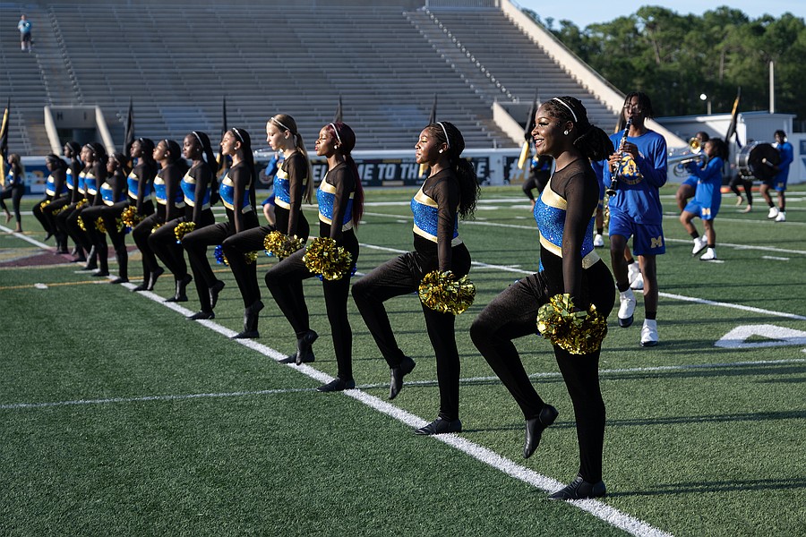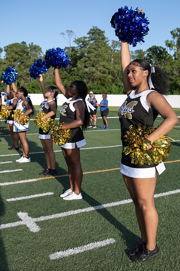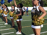 Mainland's Lady Bucs Dance and Drill Team, majorettes, color guard and band perform before the pre-season game against the Osceola Kowboys on Friday, Aug. 15. Photo by Michele Meyers