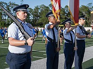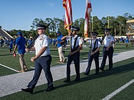 Mainland Air Force JROTC color guard posts the colors before the pre-season game against the Osceola Kowboys on Friday, Aug. 15. Photo by Michele Meyers