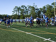 Part of the Mainland defense takes the field in the kickoff classic against the Osceola Kowboys on Friday, Aug. 15 at the Daytona Stadium. Photo by Michele Meyers