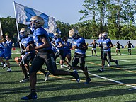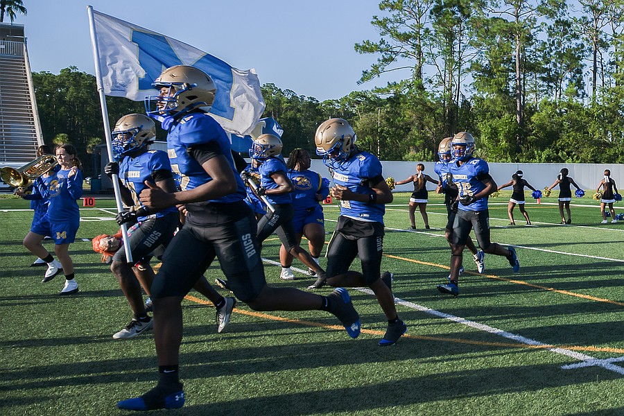 Mainland takes the field before the pre-season game against the Osceola Kowboys on Friday, Aug. 15 at the Datyona Stadium. Photo by Michele Meyers