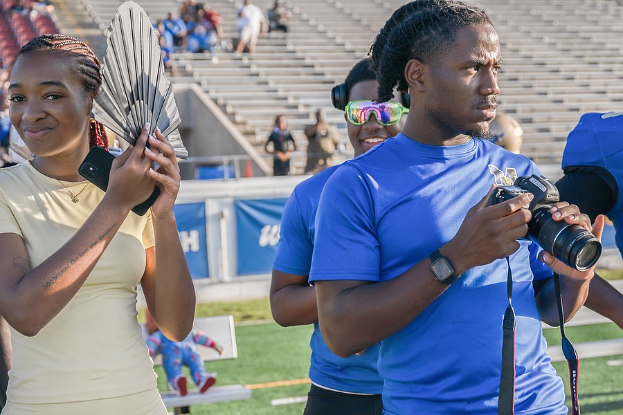 Mainland students cover the game against the Osceola Kowboys on Friday, Aug. 15 at The Daytona Stadium. Photo by Michele Meyers