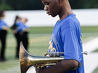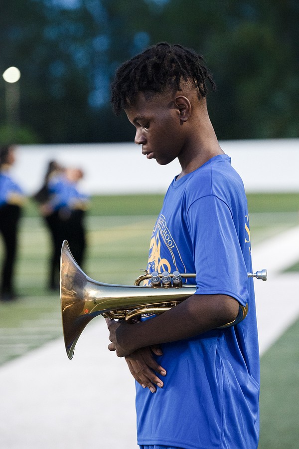 A Mainland musician waits to play during the halftime show at the kickoff classic against Osceola on Friday, Aug. 15 at the Daytona Stadium. Photo by Michele Meyers