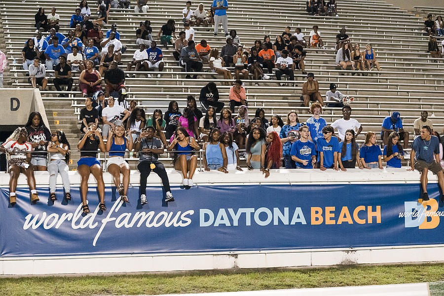 Mainland fans cheer for the Bucs at the kickoff classic against the Osceola Kowboys on Friday, Aug. 15 at the Daytona Stadium. Photo by Michele Meyers