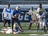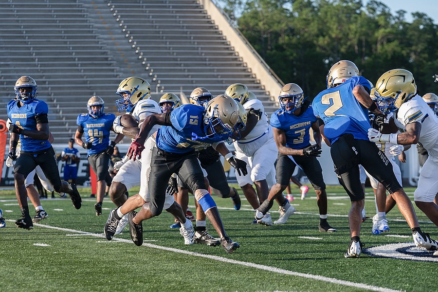 Mainland linebacker Dennis “Tank” King III is in his fourth season with the Bucs and is a leader on the defense. As the Bucs remained scoreless through three quarters, King said he encouraged his teammates to keep their heads up and keep fighting.