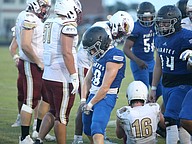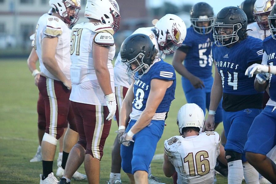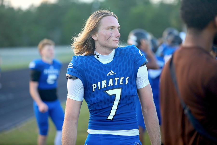 Matanzas quarterback Cole Walker watches the Pirates play defense in the kickoff classic on Aug. 15. Photo by Brent Woronoff