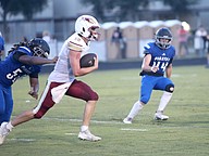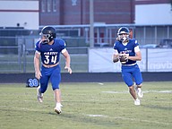 Wiley Conner (34) blocks as Matanzas quarterback Cole Walker rolls out in a kickoff classic Aug. 15. Photo by Brent Woronoff