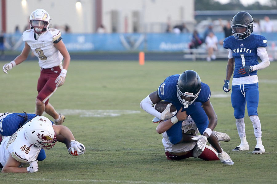 Matanzas and Episcopal played to a 7-7 first-half tie. Forrest was pleased with his team’s first possession, which ended with a long touchdown run by running back Wiley Conner. After that, the Pirates had some lapses, Forrest said.