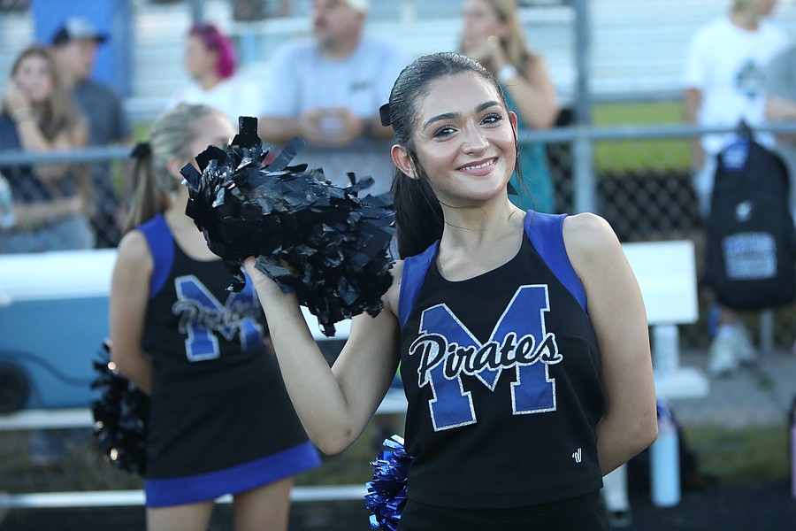 Matanzas cheerleader Alexia Lovejoy at the Pirates' kickoff classic on Aug. 15. Photo by Brent Woronoff