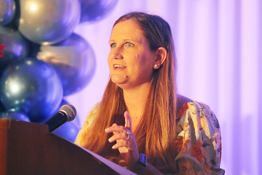 Women United Committee Chair Emily Elliott speaks during the 22nd annual Power of the Purse. Photo by Jarleene Almenas
