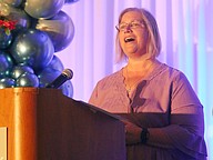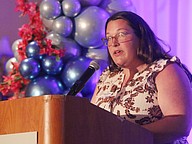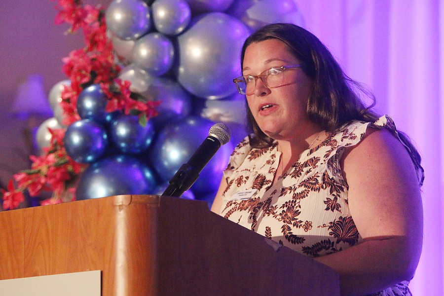 Courtney Edgcomb, president and CEO of the CF UWVFC, speaks during the 22nd annual Power of the Purse. Photo by Jarleene Almenas