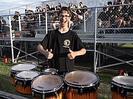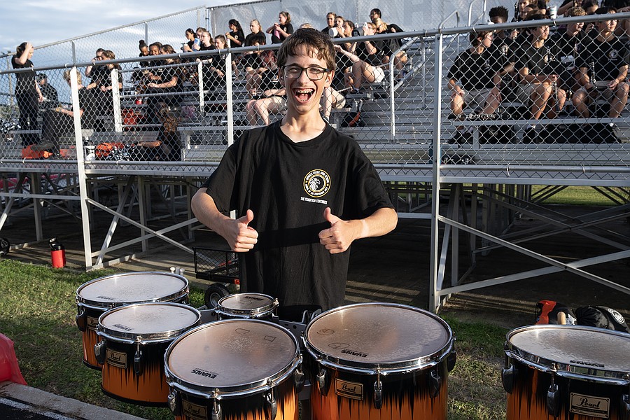 Spruce Creek drummer Miles Brannan joins the fun at the season opening game against Seabreeze on Friday, Aug. 22. Photo by Michele Meyers