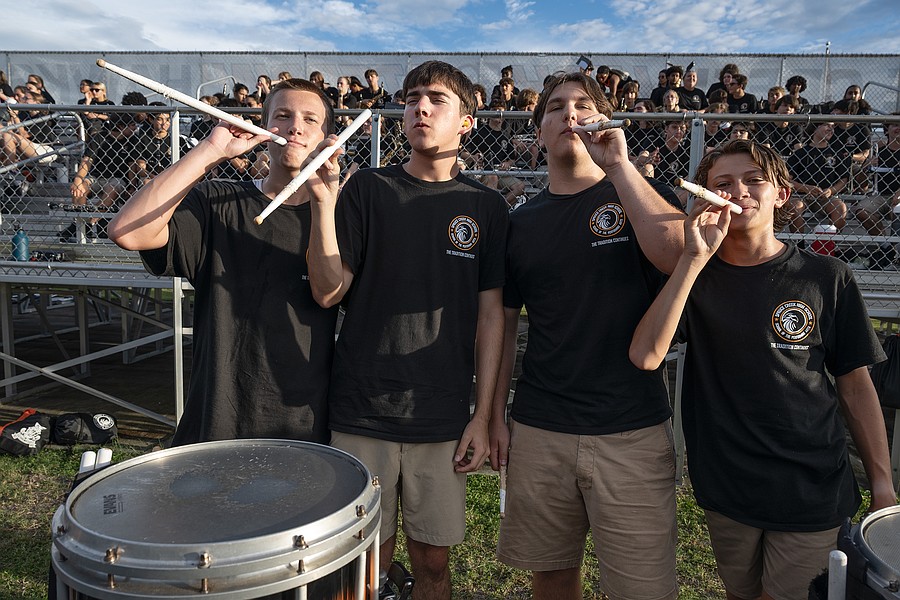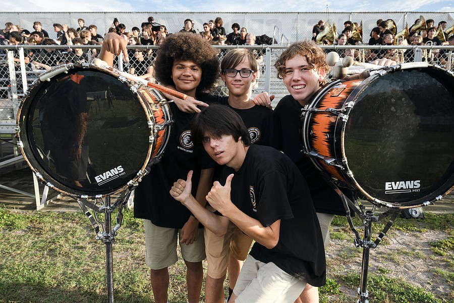 Spruce Creek drummers, the "Cigar Boys" (from left to right) - Aiden Baldwin, Brock Morgan, Sebascian Tauler and Landon Remington. Photo by Michele Meyers