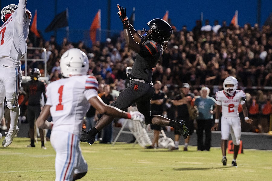 Seabreeze wide receiver Stephen Williams Jr. prepares to take the field in the game against Spruce Creek on Friday, Aug. 22. Photo by Michele Meyers