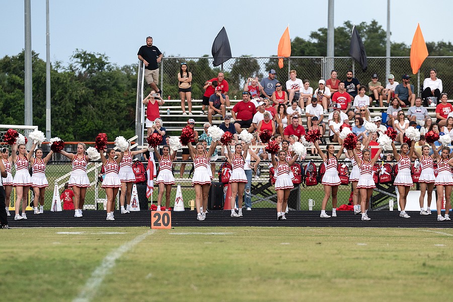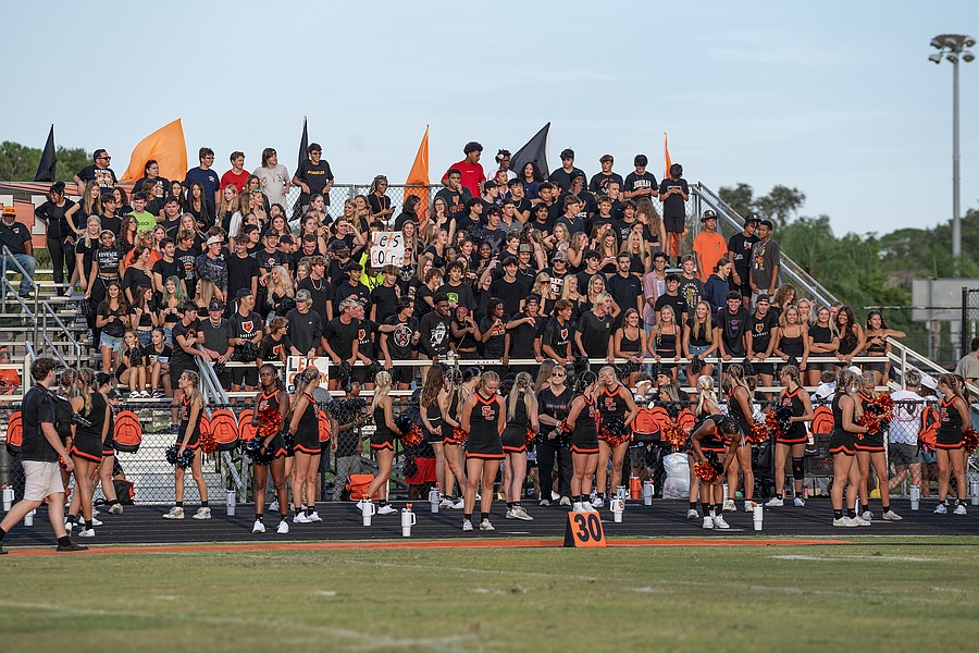 Seabreeze cheerleaders and fans gather at the season opener between the Sandcrabs and Spruce Creek on Friday, Aug. 22. Photo by Michele Meyers