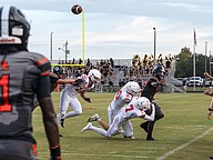 “Dean Hayes was the one that had his hand on a few possible (interceptions) tonight,” he said. “Our two-way guys — Zach Voltaire, Matthew Wells and Stephen Williams — played their butts off all night on both sides of the ball. Logan Smith played a really good game on defense and never tapped out. Cash Kurz has been playing very high level football. We can get there with that. If we just keep working and get in shape, I think we’re going to be really good.”